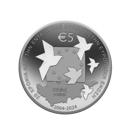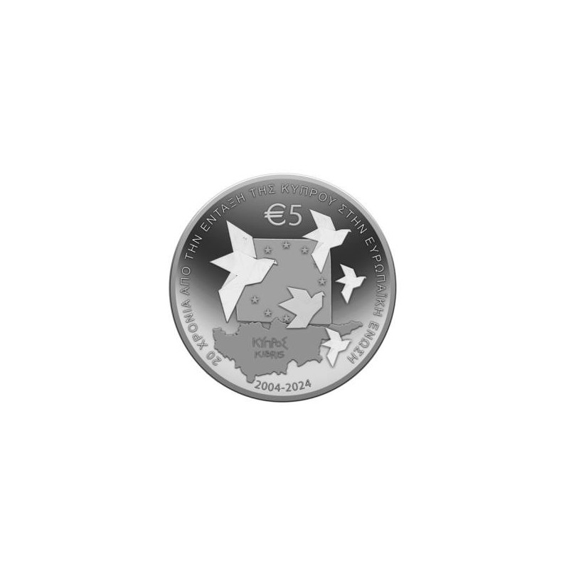 Diese Münze zeigt Zypern als schöpferische und entwicklungsfördernde Kraft in einem europäischen Umfeld, das durch die Flagge der Europäischen Union symbolisiert wird. Außerdem sind Tauben als Symbol des Friedens abgebildet. Die Münze wurde von George Stamatopoulos entworfen und in der Druckereiabteilung der Bank von Griechenland geprägt.