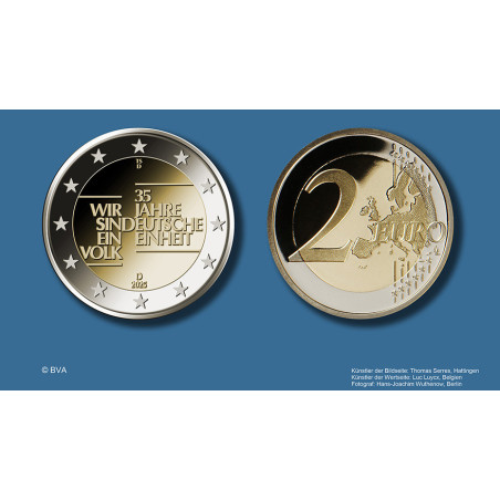 328 Tage nach dem Fall der Mauer feierten die Deutschen in Ost und West am 3. Oktober 1990 den Tag der Deutschen Einheit. Die Münze erinnert an dieses wahrhaft historische Ereignis, mit dem die Trennung der beiden deutschen Staaten endgültig überwunden wurde.