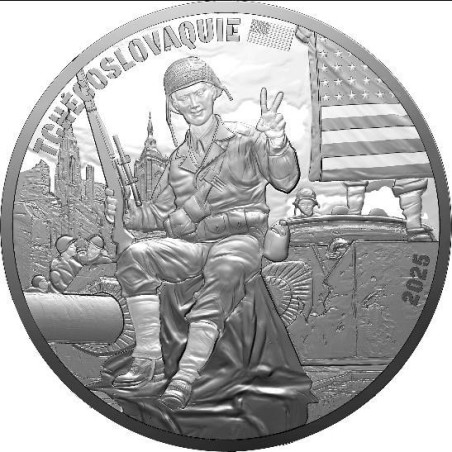 Eleven months after landing on the beaches of Normandy, Allied forces scattered across Europe celebrate the surrender of Nazi Germany. A historic day, “V-E DAY” (or Victory in Europe Day) symbolizes the end of nearly six years of conflict and the return of peace for millions of Europeans. 80 years after this decisive victory, Monnaie de Paris celebrates this historic event by paying a new tribute to the great Allied nations who fought for the liberation of France and Europe. James, an American officer in the 1st Infantry Division, landed on Omaha Beach. After D-Day, his unit continued the Battle of Normandy with the breakthrough at Avranches (Operation Cobra); it then took part in the closing of the Falaise pocket. It then fought at Mons and Liège in Belgium, before crossing the Siegfried Line to attack Aix la Chapelle. It then took part in the Battle of the Bulge before crossing back into Germany. In April 1945, the unit entered Czechoslovakia, where it spent its final weeks of combat. The reverse of this coin features all the Allied countries that officially took part in the Normandy landings, surrounded by the face value and the RF initials. Clockwise: France Libre, Netherlands, New Zealand, Poland, Australia, USA, Norway, UK, Czechoslovakia, Canada, Belgium