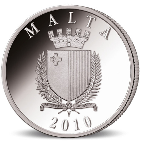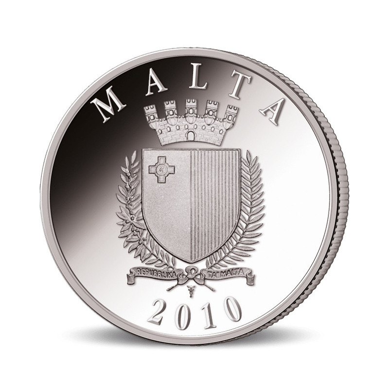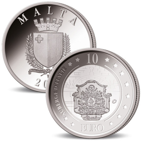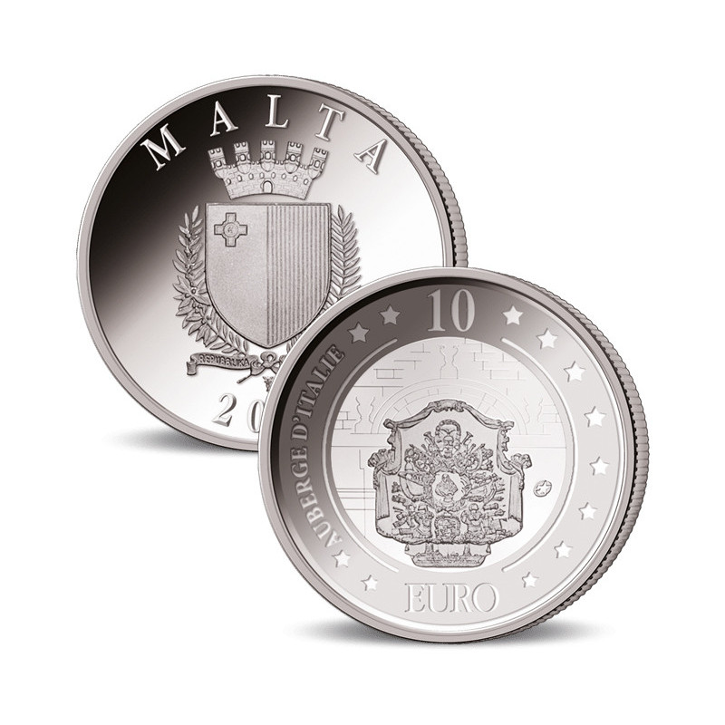 Diese Münze ist Teil des maltesischen Euro-Münzenprogramms mit dem Thema "Kulturelles Erbe". Die Münze 2010 zeigt auf der Rückseite die Auberge d'Italie. Sie wurde 1574 von Girolamo Cassar gegründet und war der Palast der "Ritter der italienischen Sprache". Später hatte das Gebäude verschiedene Funktionen, darunter ein Gericht, das Hauptpostamt und die maltesische Tourismusbehörde. Seit 2018 wird es als nationales Gemeinschaftskunstmuseum MUZA genutzt. Da das Oberhaupt der italienischen Ritter in der Regel gleichzeitig auch Flottenkapitän war, diente der große Saal gleich im Eingangsbereich als Versammlungsort für die "Kongregation der Galeeren", so etwas wie das Oberkommando der Flotte, zu dem die wichtigsten Kapitäne gehörten. Auf der Vorderseite ist das Wappen von Malta abgebildet. Das Wappen von Malta ist eine heraldische Darstellung der Nationalflagge von Malta.