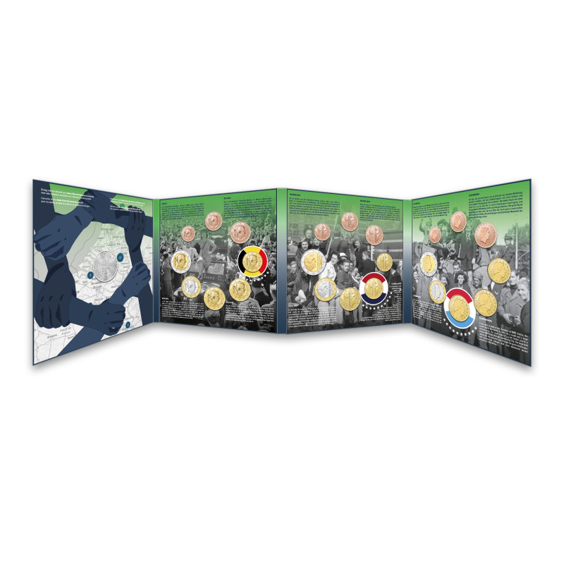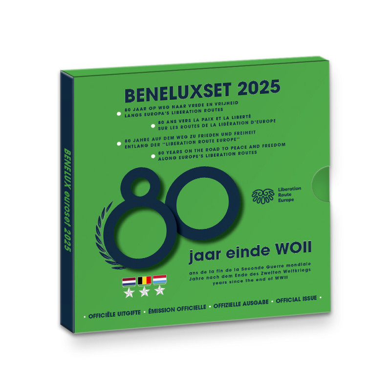 Anlässlich des 80. Jahrestags der Befreiung erscheint im Jahr 2025 eine Sonderausgabe des offiziellen Benelux-Sets. Diese jährliche Münzsammlung vereint alle Euromünzen Belgiens, der Niederlande und Luxemburgs aus dem Jahr 2025 in makelloser BU-Qualität. Das diesjährige Thema ist die "Liberation Route Europe" – ein beeindruckendes internationales Erinnerungsprojekt, das den Vormarsch der Alliierten und die Befreiung Europas erlebbar macht.