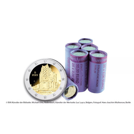 After the completion of the federal state series in 2022, Muenze Deutschland will issue a follow-up series "German Architecture" until 2038. Starting in 2023, the Elbphilharmonie is numismatically honored on an official 2-euro commemorative coin. The Elbphilharmonie was completed in 2016 and has been a landmark of Hamburg ever since. The motif shows the imposing concert hall on the banks of the Elbe in the everyday cityscape next to the initials of the artist.
