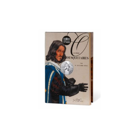 Auf dieser Vorderseite steht Athos an dritter Stelle. Zu seiner Linken befinden sich Lilien mit Spitze und weiblichen Attributen, die an seine Geschichte mit Milady erinnern. Stielgläser und Weintrauben zu seiner Rechten spiegeln die trunkene Natur der Figur wider, und eine Landkarte von Béarn, dem Herkunftsort der Figur. Zwei Elemente verbinden die vier Münzen, die jedem der vier Musketiere gewidmet sind: ein Teil einer 1", die ganz wird, wenn die Münzen aneinander gelegt werden, und einer der vier Buchstaben des Wortes TOUS". Diese Elemente sind eine eine Anspielung auf die ikonische Phrase des Romans: "Einer für alle und alle für einen".