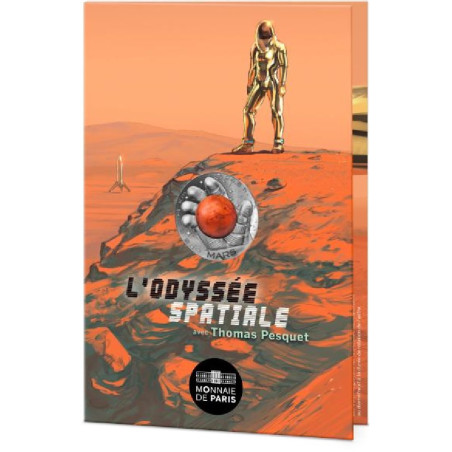 Auf der Vorderseite ist der Mars in der geöffneten Handfläche eines Astronauten dargestellt. Im Hintergrund ist ein Himmel voller Sterne zu sehen. Dieses Motiv vermittelt dem Betrachter den Eindruck, er befinde sich im Helm des Astronauten, dem es gelungen ist den Planeten zu ergreifen, um ihn zu bewundern. Am Rand der Münze stehen die Worte "6.794 km" und "24h40", die den den Durchmesser des Planeten darstellen. Auf der Rückseite ist der Nennwert von zwei Zweigen umgeben, einem Eichenzweig und einem Lorbeerzweig, die an das Euro-Symbol. Das gesamte Motiv auf der Rückseite wird von der Aufschrift "République Française" und einer Reihe von Linien umrahmt die das Sechseck darstellen. Die Münze ist in einem Kärtchen mit Motiven von Romain Hugault verpackt. Das Innere enthält wissenschaftliche Informationen über den Stern und auf der Rückseite ein Text von Thomas Pesquet.