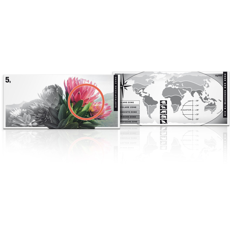 Oben rechts steht die Silberqualität "Ag 999" und vertikal der Text "DIE KLIMAZONEN DER ERDE".