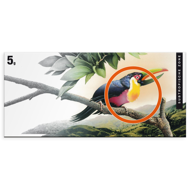 Mit der einzigartigen Flat Bar Serie wird den besonderen subtropischen und tropischen Klimazonen Aufmerksamkeit geschenkt. Die besonderen Ausgaben dieser Serie sind in 5 Gramm reinem (.999) Silber geprägt. Die Flat Bars sind nicht weniger als 15 x 7 cm groß und auf jeder Vorderseite ist in wunderschönen Farben ein Tier oder eine Pflanze abgebildet. Links oben ist das Gewicht „5g“ angegeben und rechts steht die Klimazone.