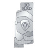 Lipstick has established itself as the make-up product of choice and is in fact the most widely consumed cosmetic product in the world. A reference to this iconic item was therefore obvious to celebrate Lancôme. These coins take the exact shape of the Rouge Absolu by Lancôme, sublimated by the patterns Monnaie de Paris has drawn. On the obverse, the cap is embossed with a diamond pattern, which is the heraldic symbol of the black color that Lancôme uses on this element. Next to it, the stick of the lipstick wears the rose pattern from the Lancôme emblem. The rose designed by Joaquin Jimenez unfurls its petals, alternately shiny and covered with the guilloche pattern.