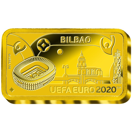 Dies ist eine der offiziellen Gold-Anlagemünzen, die zu Ehren der Europameisterschaft 2020 geprägt wurden. Diese einzigartigen 24-Karat-Goldmünzen mit der Aufschrift UEFA EURO 2020™ wurden geprägt, bevor die Europameisterschaft auf 2021 verschoben werden musste. Dies macht die Münzen sowohl bei Fußballfans als auch bei Sammlern weltweit sehr begehrt. Während der Europameisterschaft 2021 wurden die Spiele in 12 verschiedenen Ländern und ebenso vielen Stadien ausgetragen. Die Spiele in den Niederlanden fanden in der Johan-Cruijff-Arena statt, außerdem wurde unter anderem in München, Rom und St. Petersburg Fußball gespielt. Die Halbfinalspiele und das Endspiel fanden in Englands Fußballtempel statt: dem legendären Wembley-Stadion.