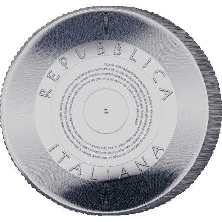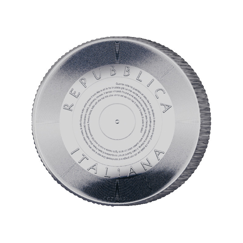 The poetic lyrics of “Il Cielo” by Renato Zero and the evocative landscape that inspired its composition are engraved on this silver coin, as in a unique and immortal 45 rpm vinyl record. The well-deserved tribute to the Roman singer-songwriter is a precious gem for collectors and music lovers. Obverse: Representation of a vinyl record with, in the centre, the lyrics of the song “IL CIELO”, composed by the singer-songwriter Renato Zero. Arch-shaped, the inscription “REPUBBLICA ITALIANA”; at the bottom, the signature of the designer “PETRASSI”. Reverse: In the background, the view of the sky and the sea that inspired the artist. Arch-shaped, at the top, the inscription “IL CIELO” (The sky), title of the celebrated song; in the centre, the stylised and outlined image of Renato Zero in one of his iconic poses; on the left “5 EURO”, the coin’s value; on the right “2025”, year of the coin’s issue and “R”, identifying the Mint of Rome. Rhodium-plated coin with coloured elements.