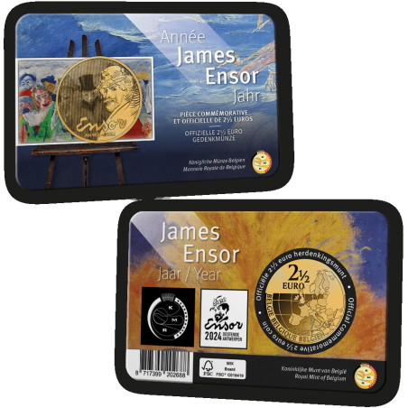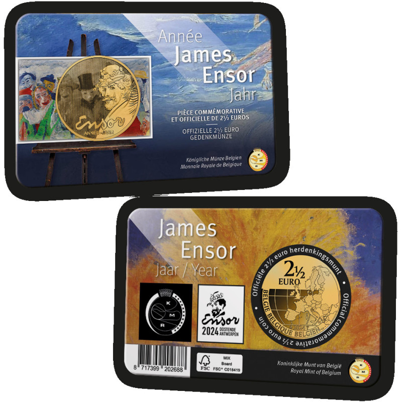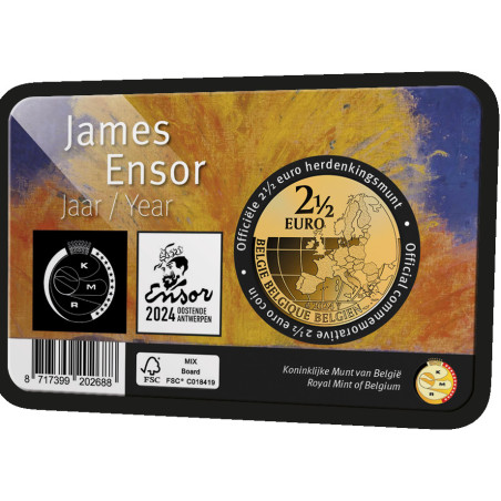 Vom Austernfresser bis zur Intrige: je berühmter und begehrenswerter/wertvoller das Werk, desto seltener die NFT. Ensors Werke erwachen durch einen 'Glitch' oder einen Schauer zum Leben! NFT: steht für Non-Fungible Token. Ein NFT ist ein digitales Eigentumszertifikat, das in einer Blockchain gespeichert ist und auf ein digitales Medienobjekt verweist. Auf 2 x 5.000 Münzkarten 2 ½ Euro James Ensor Year 2024 sind QR-Codes angebracht, mit denen ein NFT eingefordert werden kann. Es gibt also ein exklusives Extra bei den Münzen! Sie erhalten die Münzkarte in einer speziellen Mappe mit Schritt-für-Schritt-Erklärungen.