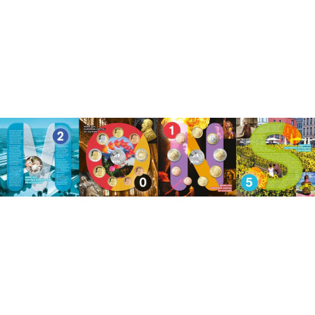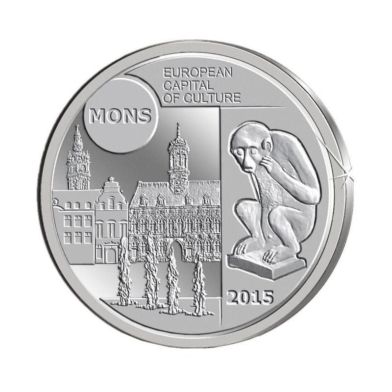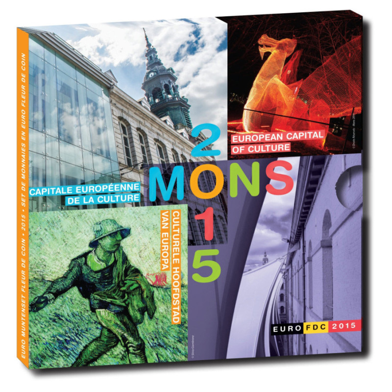 Dieses belgische Fleur de Coin-Set wurde 2015 zu Ehren der wallonischen Stadt Mons herausgegeben. In diesem Jahr war Mons zusammen mit der tschechischen Stadt Pilzen zur Kulturhauptstadt Europas ernannt worden. Der seltene Kursmünzensatz enthält alle acht belgischen Euro-Münzen des Jahres 2015, von 1 Eurocent bis 2 Euro. Jede dieser Münzen ist in der hohen Qualität Brilliant Uncirculated (Fleur de Coin) geprägt. Das Besondere an diesem Set ist, dass die belgischen 1-Euro- und 2-Euro-Münzen im Jahr 2015 nicht in Umlauf gebracht wurden. Die einzige Möglichkeit, diese zu bekommen, ist über ein jährliches Set.