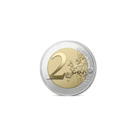 The obverse of this coin entitled Musée du Louvre depicts Perrault's Colonnade, the Eastern façade of the building overlooking the church of Saint-Germain-l'Auxerrois. This exterior façade is inserted of the museum's layout, in which the RF, the yeardate and the hallmarks are placed. In the back, the Louvre pyramid stands out from its structure, which covers the background of the coin. The reverse of the €2 coin features the face value and the shape of the European continent.