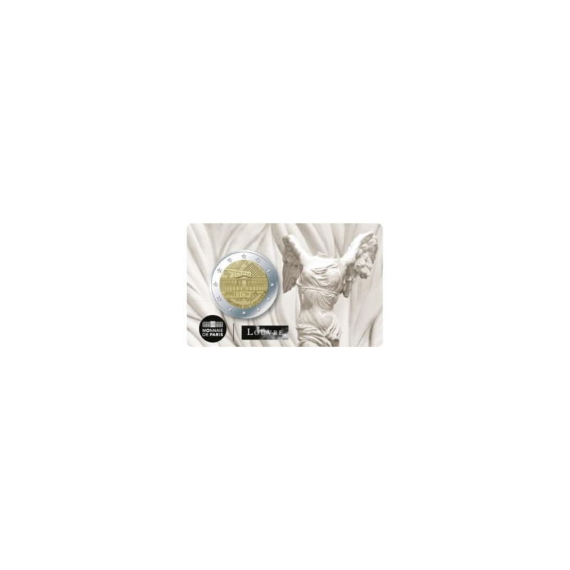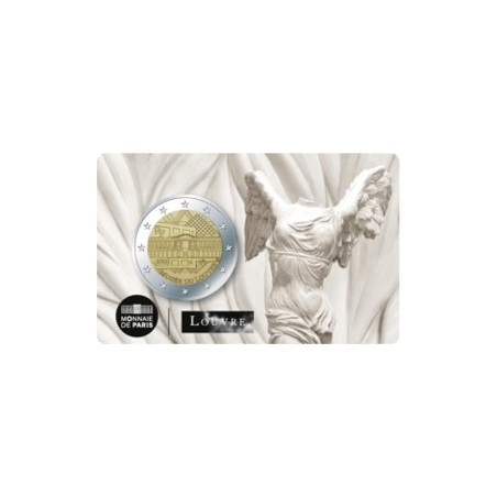 Von allen Meisterwerken der Sammlungen des Louvre sind vier auf der Verpackung dieser vier BU-Noten abgebildet: Amour et Psyché à demi couché, die Venus von Milo, die Victoire von Samothrake und die Mona Lisa. Die Coincard ist eine versiegelte Karte im Kreditkartenformat (8,6 x 5,4 cm). Auflage 4* 75.000