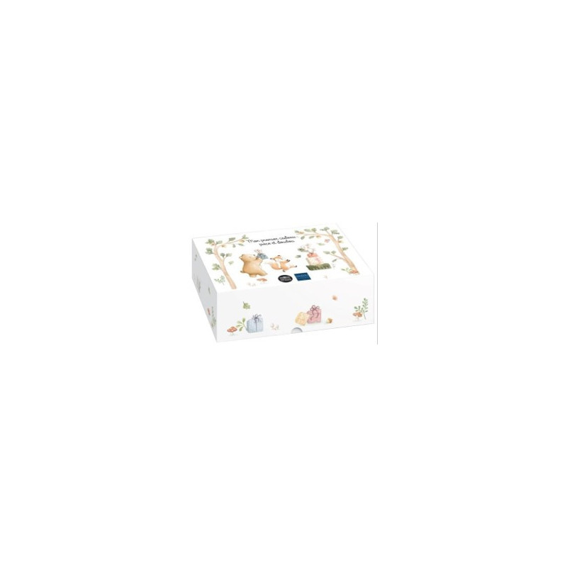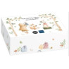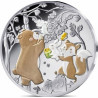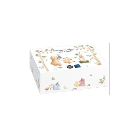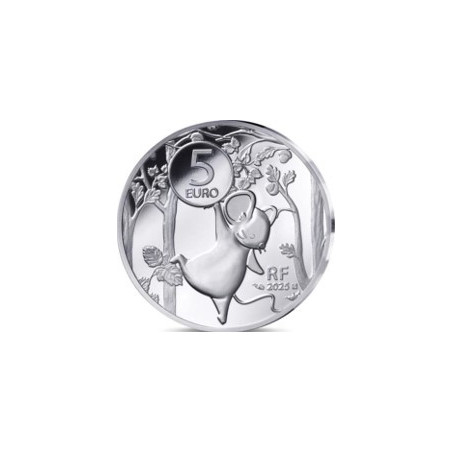 Auf der Vorderseite dieser farbigen 5€-Silbermünze BE, einer neuen, für diese Kollektion entwickelten Stückelung, ist das gesamte Team versammelt, um ein freudiges Ereignis zu feiern: die Ankunft eines neugeborenen Babys im Wald! Jeder hat Geschenke und Fröhlichkeit für diesen wunderbaren Tag mitgebracht. Der Bär, der Fuchs, der Hase und die Maus werden durch einen selektiven Auftrag von transparenter Tinte zum Leben erweckt. Auf der Rückseite hält eine kleine Maus eine 5-Euro-Münze, die den Nennwert dieser Währung symbolisiert. Auf der rechten Seite befinden sich das RF-Symbol, die Jahreszahl und die Punzen. In Zusammenarbeit mit der französischen Marke Doudou et Compagnie bietet Monnaie de Paris die und einen knuddeligen Hasen an, die beide in Frankreich hergestellt werden. Die Box kann später als Aufbewahrungsbox für alle Schätze Ihres Kindes verwendet werden.
