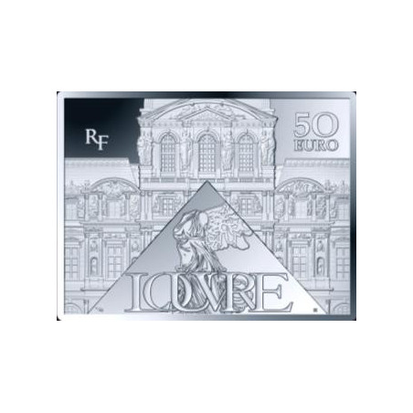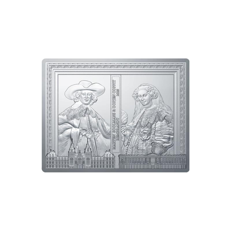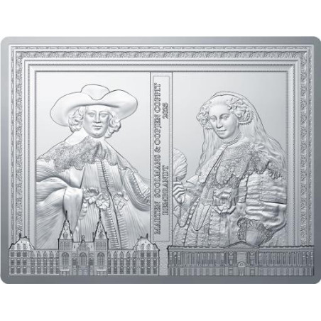 Painted in 1634, these two life-size portraits are among the great artworks of Rembrandt, one of the masters of Dutch painting. They bear witness to the union of Marten Soolmans and Oopjen Coppit. They are the only known life-size portraits painted by Rembrandt! The portraits of Marten and Oopjen were acquired in 2016, respectively by the Rijksmuseum in Amsterdam and the Louvre in Paris. They reside in alternate custody between these two great European museums. In 2025, we celebrate their return to the Louvre galleries for a five-year period. 50€ Silver Proof coins represent the busts Marten Soolmans and Oopjen Coppit. The names of the subjects, the painter and the vintage separate the two paintings. The outline of the coin is decorated with the original frame of the portraits and the museums in which they reside in alternating custody : the Rijksmuseum on the left and the Louvre on the right. The reverse, common to the collection, depicts the Louvre building as seen from the inner courtyard. In the foreground is the Louvre's famous Pyramid.