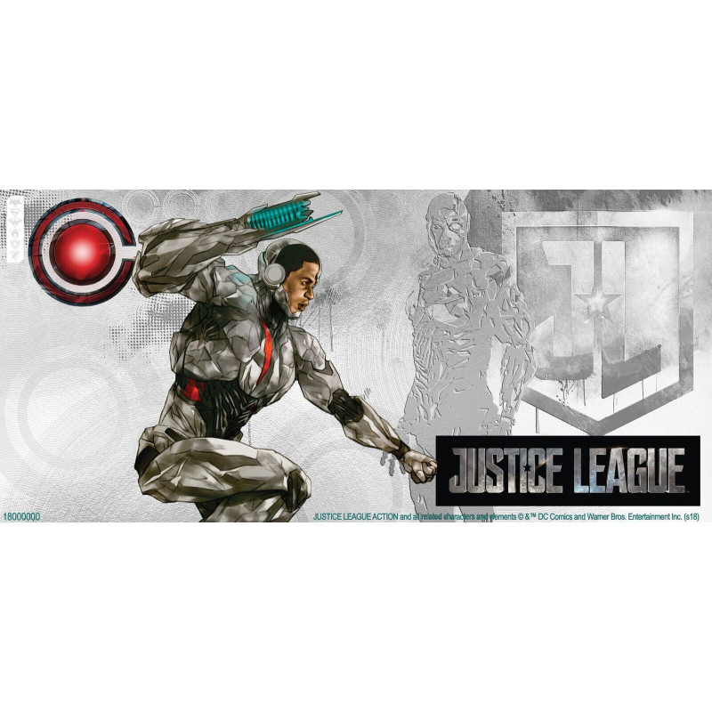 Zur Erinnerung an den Film von 2017 zeigen die zweite und dritte 5g-Note aus reinem Silber der Justice League-Kollektion atemberaubende Bilder von Cyborg, halb Mensch, halb Maschine, und Aquaman, dem Erben der Sieben Meere.