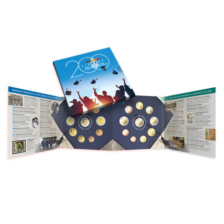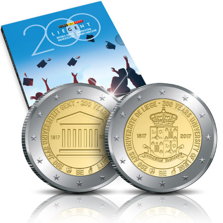Das Set enthält die 8 belgischen Münzen des Jahres 2017 in BU-Qualität sowie die 2 2-Euro-Gedenkmünzen zum zweihundertjährigen Bestehen der Universitäten von Gent und Lüttich. Die drei 2-Euro-Münzen sind im Set aufgereiht, wobei die 2-Euro-Münze mit dem Bildnis von König Philippe in der Mitte liegt.