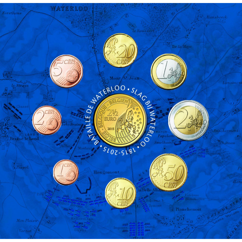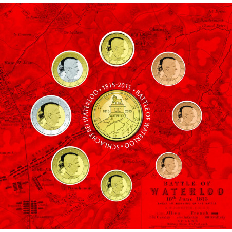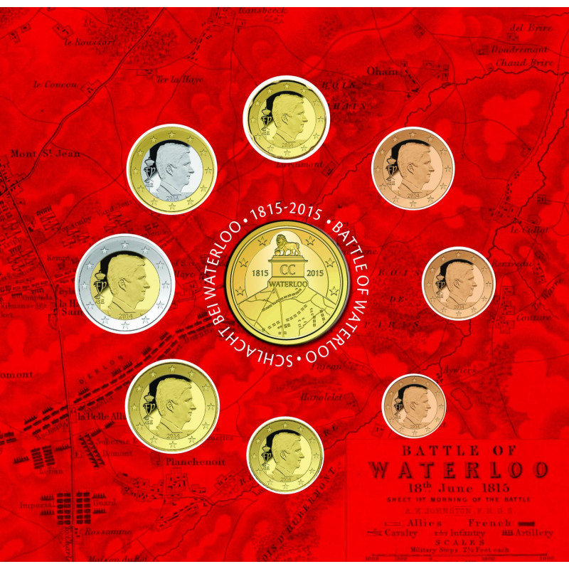 Dieses belgische Münzset 2015 steht ganz im Zeichen der Schlacht von Waterloo. Das Set enthält die 8 verschiedenen Euro-Münzen mit dem Motiv von König Philipp, aber auch die 2,5-Euro-Sondermünze "200 Jahre Schlacht von Waterloo". Das Set wird in einer schönen illustrierten Verpackung geliefert.