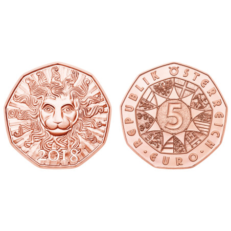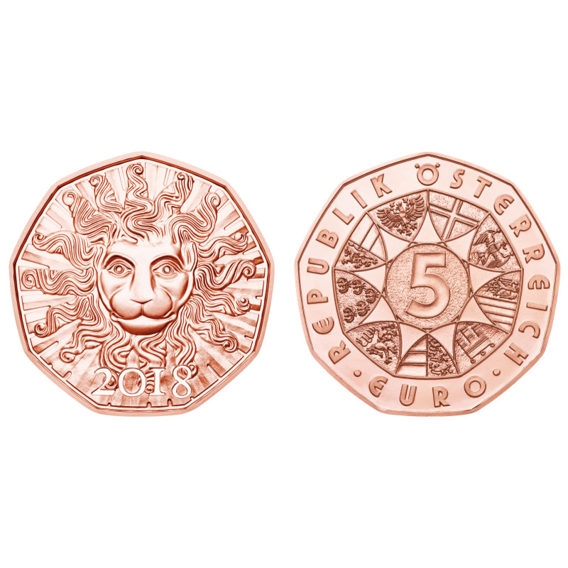 Wenn sich das alte Jahr dem Ende zuneigt und das neue beginnt, ist es nur natürlich, wehmütig über die Schultern auf das Vergangene zu schauen, bevor man sich dem kommenden Jahr zuwendet. Um sich für die Neujahrsmünze 2018 inspirieren zu lassen, ging die Münze Österreich rund 650 Jahre zurück, bis tief ins Mittelalter, wo wir auf den glänzenden Kopf eines Löwen stießen, dessen verschmitztes Grinsen von einer stattlichen, wallenden Mähne umrahmt wird. Die Vorderseite der neunseitigen Münze zeigt die Wappen der neun Bundesländer Österreichs. Diese reizvolle, fast weibliche Darstellung eines Löwen fand sich auf dem Einband des ältesten der Millionen Bücher, die die beeindruckende Sammlung der Österreichischen Nationalbibliothek bilden. Der katholische Priester Johannes von Troppau verfasste im Jahr 1368 dieses wunderbare Buch, in dem die Heiligen Evangelien in Gold und mit detaillierten Illustrationen wiedergegeben sind. Die Münze Österreich wünscht Ihnen ein gutes Jahr 2018. Mögen Sie die Kraft eines Löwen haben!