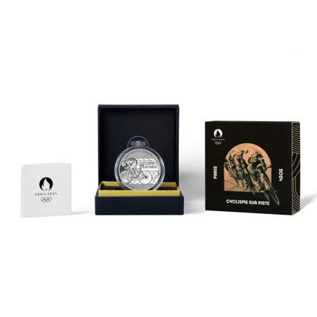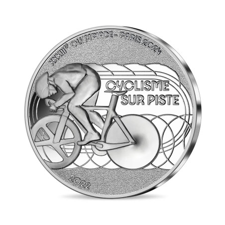 Anlässlich der Olympischen und Paralympischen Spiele 2024 in Paris würdigt die Monnaie de Paris diese renommierten internationalen Wettbewerbe mit einer Kollektion, die den Sport, seinen Wert, die Athleten, aber auch das Erbe des Gastgeberlandes ehrt. Der Olympismus und der Paralympismus werden gefeiert. Schließlich wird auch der Bahnradsport auf den Münzen präsentiert. Diese olympische Disziplin vereint mehrere Wettbewerbe, die in einem Velodrom ausgetragen werden. Ein Velodrom verfügt über eine 250 m lange Strecke und überhöhte Kurven. Die Fahrräder, die für diese Disziplin verwendet werden, haben keine Bremsen. Die Rückseite der Serie zeigt eine Ansicht von Paris, wo die Seine wie eine Leichtathletikbahn aussieht. Der Eiffelturm beherrscht die Stadt und beleuchtet den Wettkampf.