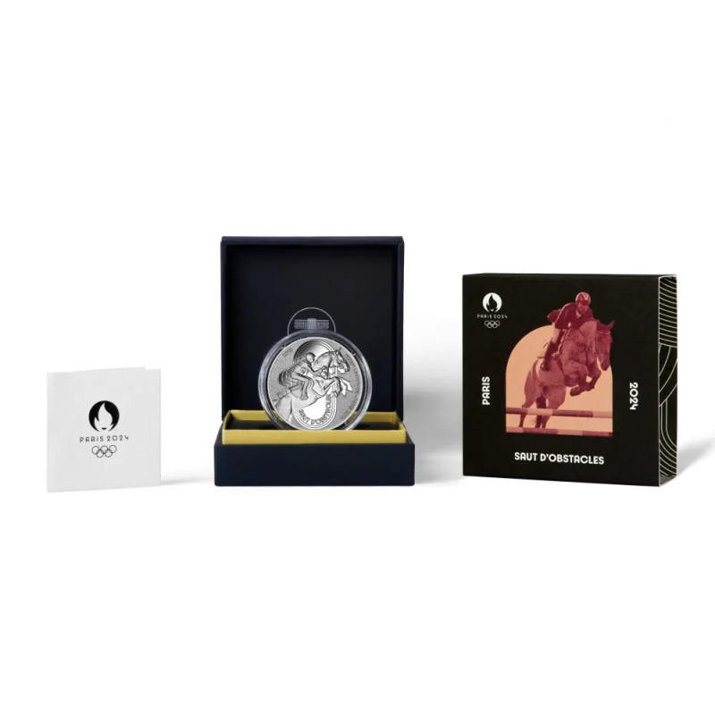 Anlässlich der Olympischen und Paralympischen Spiele 2024 in Paris würdigt die Monnaie de Paris diese renommierten internationalen Wettbewerbe mit einer Kollektion, die den Sport, seinen Wert, die Athleten, aber auch das Erbe des Gastgeberlandes ehrt. Der Olympismus und der Paralympismus werden gefeiert. Im Jahr 2022 wird das Springreiten auf den Münzen hervorgehoben. Der Reitsport wird bei den Olympischen Spielen in drei Disziplinen (einzeln und in Teams) präsentiert: Springreiten, Dressur und Vielseitigkeit. Es besteht darin, Hindernisse in einer vorher festgelegten Reihenfolge so schnell wie möglich zu überwinden. Der Reitsport ist neben dem Modernen Fünfkampf die einzige olympische Sportart, bei der Tiere mit Menschen konkurrieren, aber auch eine der wenigen Sportarten, bei der beide Geschlechter gegeneinander antreten. Die Rückseite der Serie zeigt eine Ansicht von Paris, wo die Seine wie eine Leichtathletikbahn aussieht. Der Eiffelturm beherrscht die Stadt und beleuchtet den Wettkampf.