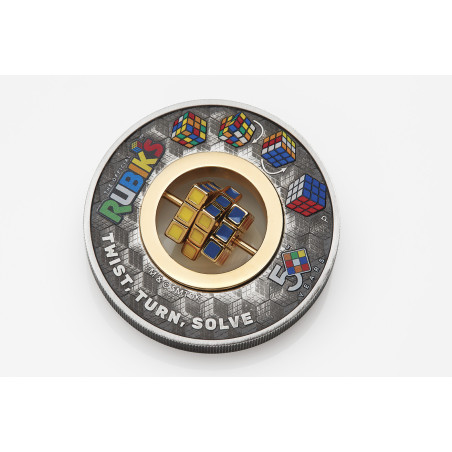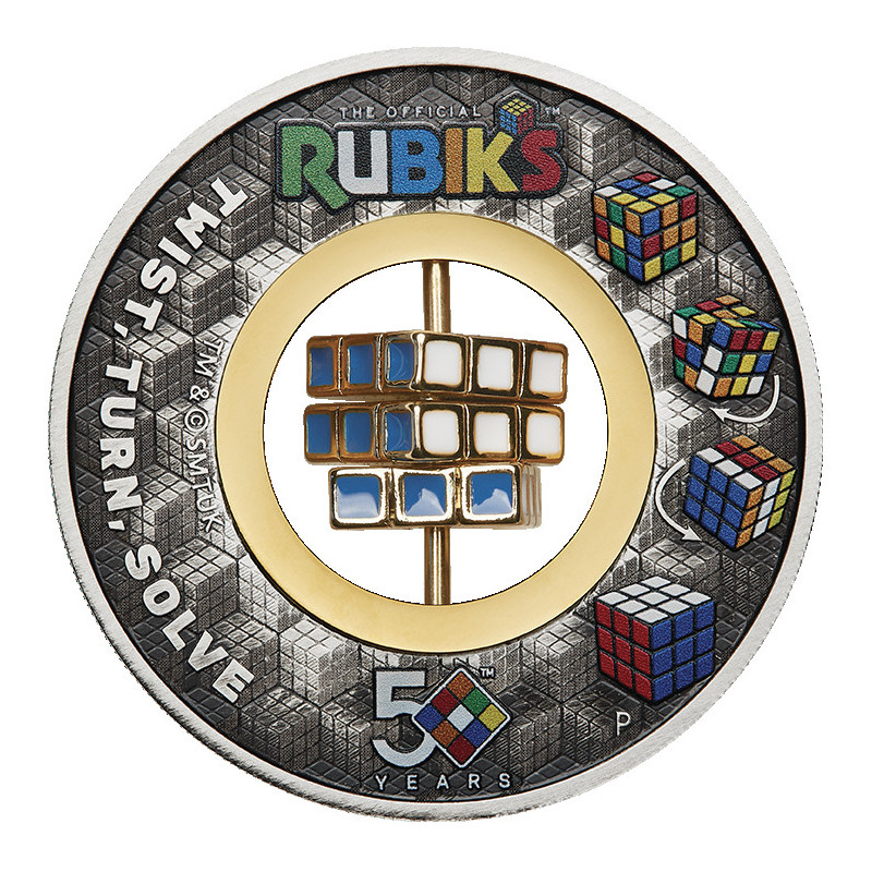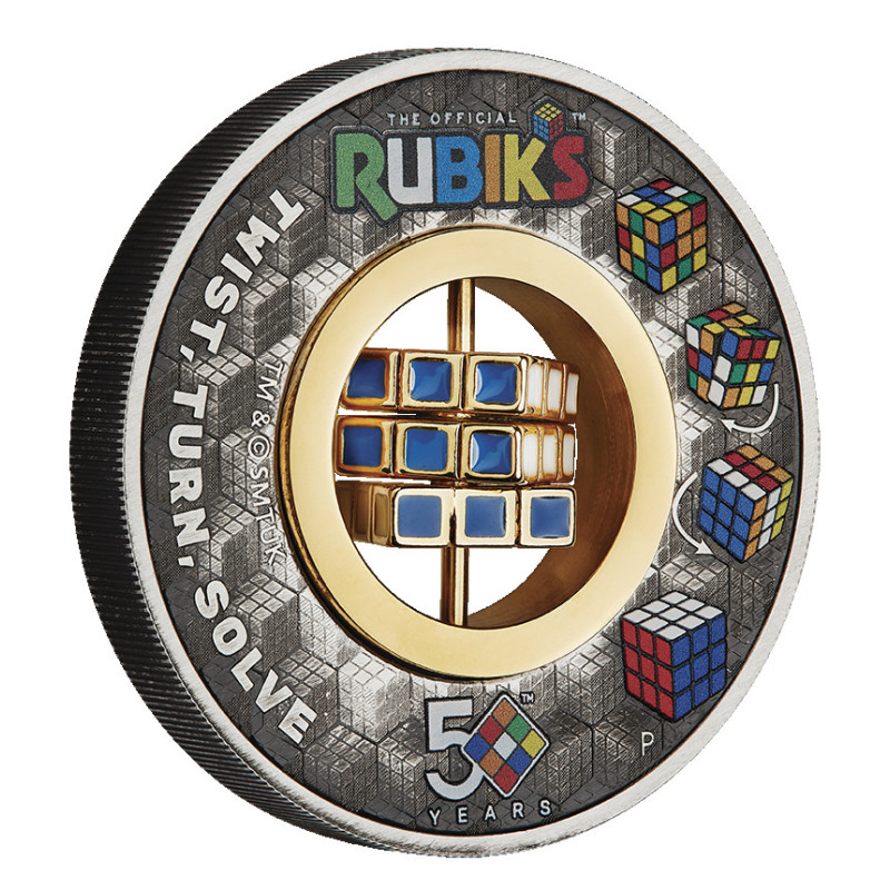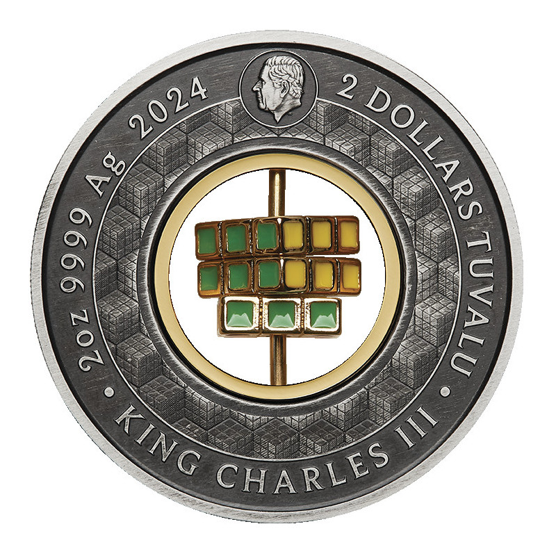 Der Rubik's ® Cube ist ein weltweit bekanntes Spielzeug, das der ganzen Familie Spaß macht. Jede Seite eines Rubik's ® Cube besteht aus neun farbigen Quadraten. Zu Beginn des Puzzles sind die Quadrate so angeordnet, dass jede Seite eine einheitliche Farbe hat - gelb, weiß, blau, grün, orange oder rot. Ein interner Drehmechanismus, der es ermöglicht, jede Seite unabhängig voneinander zu drehen oder zu wenden, wird verwendet, um die 54 farbigen Quadrate durcheinander zu bringen, die dann wieder in ihre ursprüngliche Anordnung gebracht werden müssen, um das Puzzle zu vervollständigen. Es löste eine weltweite Begeisterung aus, bei der Rätselfreunde auf der ganzen Welt mitmachen wollten, und diejenigen, die es besonders ernst nahmen, studierten Techniken und Strategien, um den Rubik's ® Cube so schnell wie möglich zu lösen. Im Juli 2023 wurde der Welt Weltrekord im Lösen eines 3x3-Würfels bei bemerkenswerten 3,13 Sekunden. Die Perth Mint freut sich, diese einzigartige Rubik's™ Cube-Sammlermünze zu präsentieren. In der Mitte der Münze befindet sich ein rotierendes, 24 Karat vergoldetes Modell eines Rubik's ® Cube. Geprägt von der Perth Mint aus 2 oz 99,99 % reinem Silber geprägt, wird die Münze als gesetzliches Zahlungsmittel unter der Autorität der Regierung von Tuvalu ausgegeben. Die Perth Mint wird nicht mehr als 3.000 Stück der Rubik's™ Cube 50th Anniversary 2024 2oz Silver Antiqued Farbige Münze.