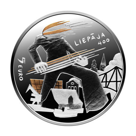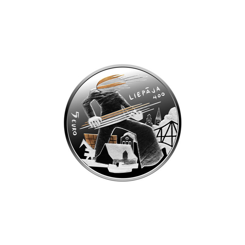 Vom kleinen Fischerdorf Liva hat sich Liepaja zur drittgrößten Stadt Lettlands entwickelt und feiert in diesem Jahr ihr 400-jähriges Bestehen. Aus diesem Anlass hat der Künstler Krišs Salmanis eine Münze geschaffen, die die Gegensätze der Stadt vereint und sie symbolisch in den Bildern der Sonne und des Windes widerspiegelt. In ihrem Gleichgewicht bildet sich die Seele der Stadt.